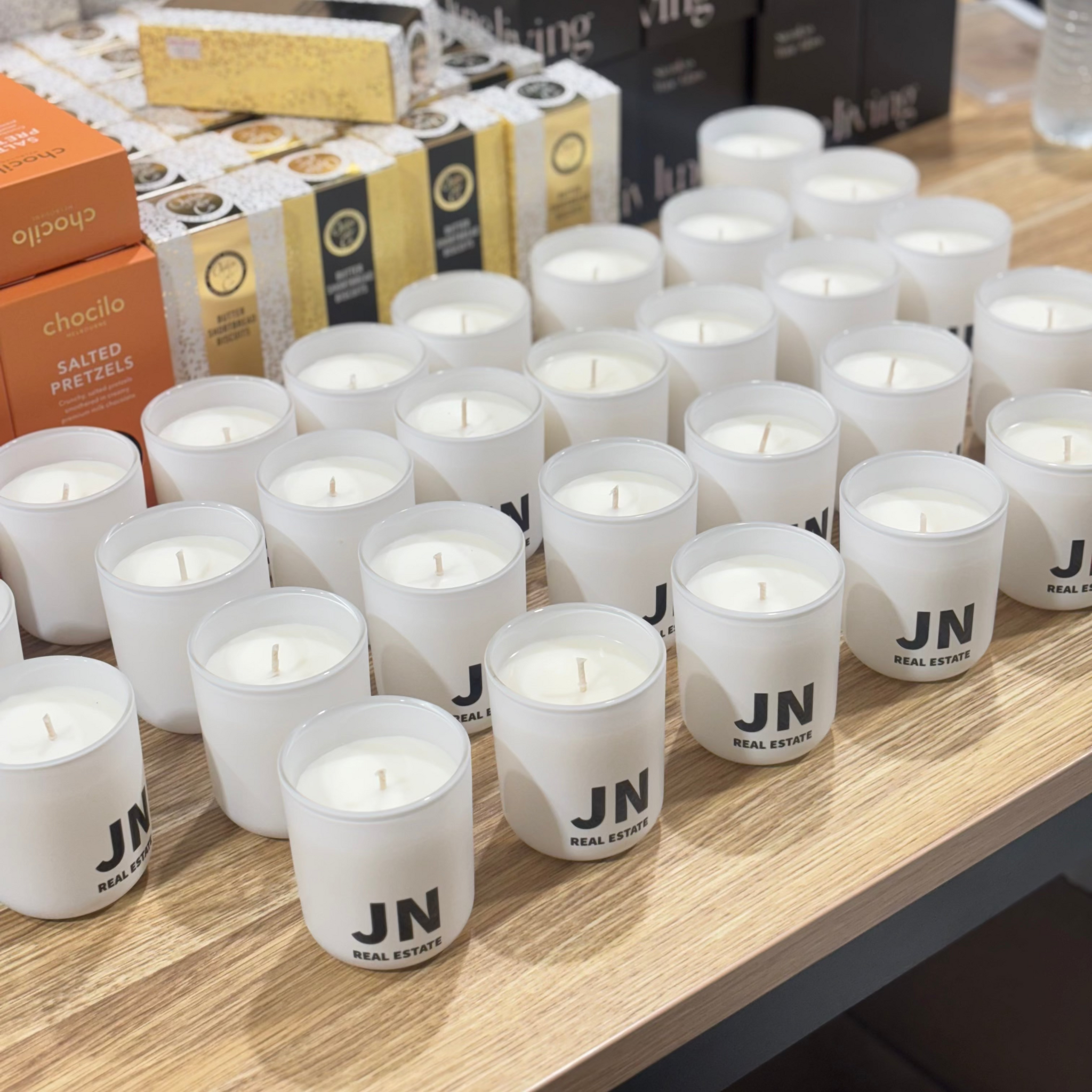 Branded Candles: We're excited to now offer no minimum order on branded candles. To have your brand on the candle jars, please email us a copy of your logo upon purchasing a hamper.
